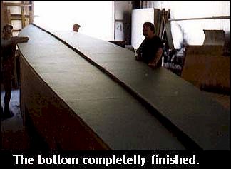the sides and the bottom placed across the chine logs and the bulkheads. We used two