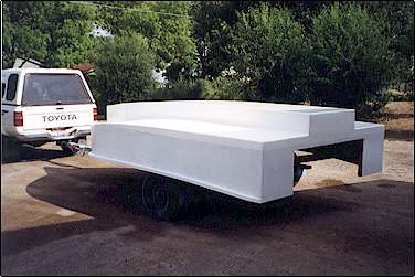 I am making a dry dock with laminated 2 x 8's with a 9" span to put it on prior to lowering it down on the trailer.  I bought a stripped down, used EZ-Loader trailer for $150.00 and built the bunks to suit the MT hull configuration. I built the lower ones first, then will put the boat on the trailer and custom fit the outer hull and side restraints. I am not enough of an engineer to build them ahead of time. Once I see what I need, I can build most anything, but have no skill for anticipating measurements. So far, I have about 1500 hours in this boat and do not regret one hour. I did get a little (okay, a lot) tired of sanding.