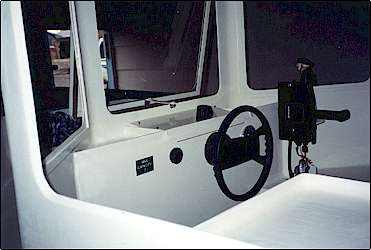 Pilot house, drawers, storage and steering mechanism. Center steering wheel.