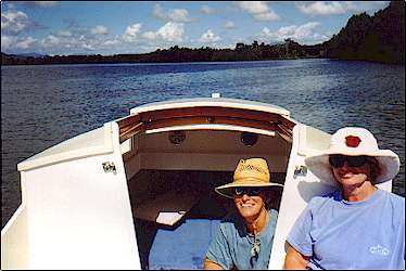 at what sedate and relaxing river cruising is all about. With the tiler in one hand and