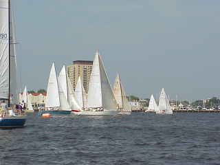 back . The spinnaker boats were coming back in and we were now in a group of 30 boats that