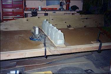 Plastic milk jugs with water for scarf joint pressure, note plastic above and below joint.