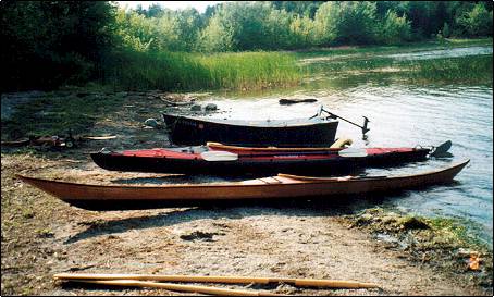 Paul Lefebvre's kayaks along with David Jost's Pointy Skiff…….. sunbathing!