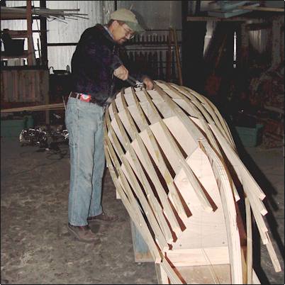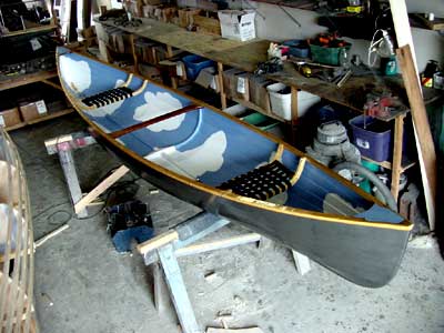 ....and, presto, a canoe.  The clouds are one of Sandra's favorite motif's.  I like them, besides, it's her boat.  Now, all that's left are the seats.