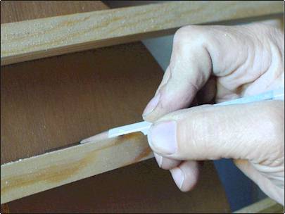 This shot shows how I ground a regular wood pencil to make a mark right along the ribands.