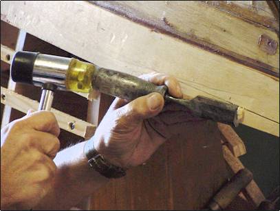 .....then chisel out some of the strake so that the next one will lay flat at the stem.  This is explained much better in Tom Hill's book.