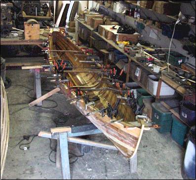 The next day, I took the clamps off.  All that's left now is the outwales and seats, and we can begin painting.