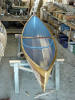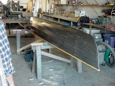 Finally, all the strakes are glued and the 'husk' is off the mold and turned over.