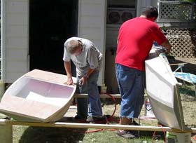 After that weekend and some fast reading from the Yahoo Mouseboat group site to get the plans, a little background and to check other people’s techniques, construction was eminent. When one of Daniel’s fishing buddies, Kevin, saw the plans and pictures that we took, he was hooked, and they both wanted to start construction as soon as possible.