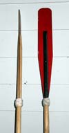 Using scrap ¼ inch plywood and approx. 7 feet of 1 5/16 closet rod. They are loosely based on Greenland kayak paddles. The seating in the boats are resin chairs with the legs cut to 1 inch and set on sheets of foam rubber. Makes adjusting trim easy for different users and large cargo loads (i.e. tackle boxes, fishing rods, bait buckets, etc.)