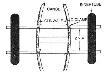outrigger with 2" x 4" lumber, C-clamps and two innertubes