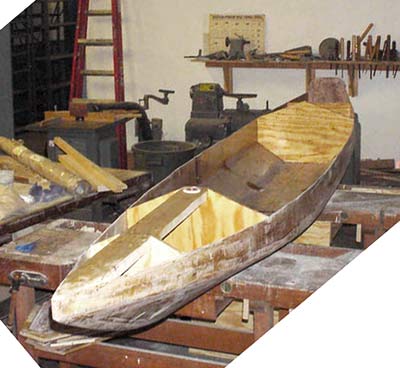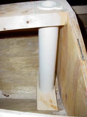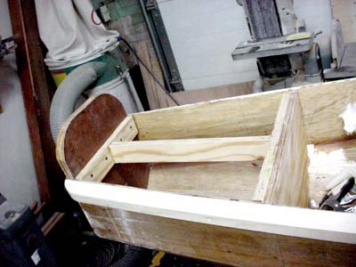 Instead of the specified bresthook, mine extends to the bulkhead forming the passenger area. This is to support the mast. The foot of the mast I made up of 2x material and relief cut to control the bottom of the mast. I also left in the rear most bulkhead and joined it to the transom with a 3/4" plywood strong back to handle a motor for trolling.