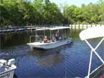 Here the banks of the SUWANNEE are very high and steep bearing the many scars and markings of previous floods. Now, in the non rainy season of March the tranquil tannic waters are so inviting and cry out for a boat. Launching is not quite as easy here and it is advisable to use one of the many Launch ramps and take outs. The Florida Fish and Wildlife Conservation Commission and the Suwannee River Water Management District (800 226-1066) will provide you with an excellent map of the upper and lower Suwannee depicting all the points of interest for boaters