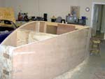 The second boat is a Bolger Micro. Assembling the bulkheads and the sides was much easier than I thought it would be due to the 1x2s screwed onto the bottom of the bulkheads (sailboat 1). This made lining up everything a piece of cake. I have opted for the self-draining cockpit as can be seen in picture 3. In picture 2 I am attaching the ½” BC SYP bottom. The sides are made from 3/8” luan that local homebuilders use for soffits. It passed the boiling test with flying colors. I recently bought some from another lumber yard which failed the boiling test. The finish on that plywood was much smoother and was supposed to be the same exterior glue. I am glassing the bottom up to the waterline with 10 oz. cloth and epoxy.
