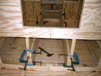 After I was happy with the location of the seat panels, I apply PL Adhesives to the panel surfaces and clamped the two panels into place.