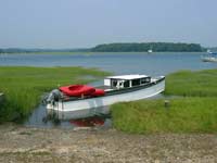 Aft view, La Patita . Note fancy, high-tech trailer light stanchions..