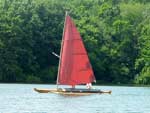 Dan St. Gean in his really, REALLY fast proa. Actually he tells me it’s a Polynesian canoe, since it tacks instead of shunting.