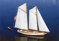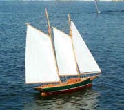 For those who fall into the category of persons with a genuine love of schooners, particularly those of vintage style who haven’t the patience or the ability to scratch build one without `going bananas’ in the process, then maybe, just maybe, Victor Model Products’ model that I am going to tell you about should be seriously considered. Modelled loosely or faithfully (I tend to suggest the latter) on the Mary J Ward, a small American inshore fishing schooner of the late 1880’s and presented in kit form, the MJW model (several shown above) when built comes out at a length of 34” (41” with bowsprit and in my eyes is a downright sexy and faithfully reproduced schooner of the period. The original boat was built in Essex, Massachusetts and her history tells us that she was once credited with outsailing the fast Boston Pilot boat Hesper. Victor operate out of Downey in California, producing some twenty different model sailboats. When asked, George Dornis of Victor told me that to date 200 of the schooners have been sold, the largest fleets of them are in Florida and there are MJW schooners currently being built in both Britain and Australia. No sign yet of one in New Zealand.