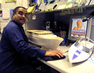Above is Martin Davis (originally of Jamaica) who some four years ago set up MODEL BOAT MAYHEM, an independent model boat website on the internet, a site that although mainly covering power boats does include those under sail. Light-hearted, it fills a need for all grown men and women who enjoy building and playing with model boats. Visitors to the website have increased dramatically and today there is an active membership of over 2,000, but most important it is totally free to those who visit. A power boat and model speedboat enthusiast, Martin is helped by his colleague who simply goes by the name of “Bradders’. Although it is principally on powered boats it is really worth visiting, so just punch in `Model Boat Mayhem’ and your search engine will do the rest. In the third photograph above, no connection, (wait a moment, it was on Martin’s website that I found and with his help made contact with Brian Clark, the builder of HMS Killingworth seen under sail).