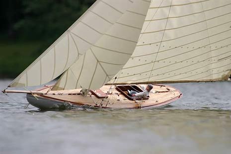 An absolutely beautiful William Fife designed yacht (above), Lucky Girl built by Gisela and Helmut Scharbaum of Germany, the photo captured by modelmaker and lensman, Hans Staal. The model took 1300 hours to build and was first sailed in 2004, The original boat was also named Lucky Girl after the 3 year old daughter of the original owner, a Mr Tallberg who in 1924 sailed the same yacht to win the bronze medal for Finland in the Olympics.