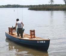 Lance Turner showed up with his Railbird Skiff, a masterpiece that has a very well done paint job, not to mention workmanship. |