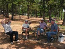 John Wright came without any boat, which is quite unusual, as he has several to choose from. He was featured on the cover of a recent issue of Messing About in Boats sailing in his Puddle Duck Racer in the Texas 200. During a respite in the paddling John was involved in some heavy discussion of, most likely, nautical events and vessels. |