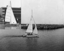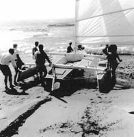 I put the boat into the water at Solomons, Maryland and had some wonderful sails on the Patuxent River and on the Chesapeake. The Triad is a high performance well designed very responsive and very forgiving boat. The flat bottom design of the arnas and main hull almost forces the boat onto a plane in an adequate breeze. The feel of this boat is amazing when it breaks free and goes onto a plane. Even more amazing was that the'Triad did this with the bottom coated with barnacles due to the ineffectiveness of the fresh water anti-fouling bottom paint in sea water.