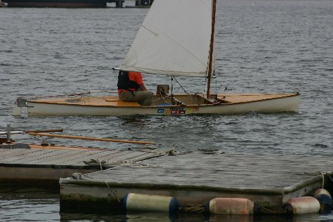 A decked sailing canoe looked as though it was ready to jump