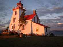 As this was happening, Joe was experiencing his own drama. He got his boat under control and ducked into a cove in the lee of Strawberry Island. After 10 minutes, with no sight of us, he got worried. He got his motor fired up and tried to round the point in the teeth of the wind, but his motor got dunked, sputtered and died. He then set off on foot across the island to try to establish visual contact. We made the turn downwind to pass by the lighthouse and our speed picked up. As we entered the cut, we saw a bunch of kids and adults at the lighthouse waving to us and motioning us to enter the sheltered cove in the lee of the point. As we approached the dock Joe came bounding out to meet us. The kids were chattering excitedly. The adults got us tied off. This was the Gaffney family and friends. We were their guests for the next day and a half. Once out of the waves, the boat bailed out easily, and we moved to an adjacent cove where Joe had taken shelter and began to sort ourselves out, lick our wounds and compare stories.