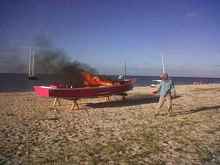 And true to his word, Andrew burned his Laguna Cinco (Sinko) to the ground as a grand finale. After all, the boat was leaking 25 gallons an hour by the final day.