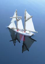 On a modeling Forum website, thanks to Harry Duncan I had found Phillip Artweger, a Skyvan pilot from Austria flying out of Klatovy in the Czech Republic. A micro ship modeler he had used a Constructo kit and built an RC Brigantine schooner  called  St Helena that I fell in love with. It had a length on deck of just eight inches. I saw a video of it sailing and I persuaded him to let me enter it in the Challenge. We became friends and the model became an early benchmark boat to beat.