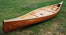 Stefano Fasi’s wood strip version of the Modern Malecite canoe. |