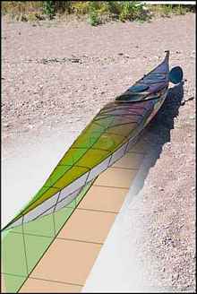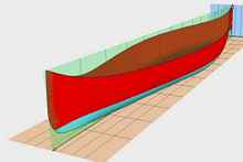 The computer model overlaid on my version of the 1959 Ken Taylor kayak. |