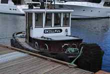 The Pete Culler-designed yard tug CAPN PETE has served the The Center For Wooden Boats (CWB) for years in many capacities. This year, the sun was just right to get a good look at her bow puddening, or fender. The wear on her towing post (not shown) implies she has been quite busy in her assigned duties of late, probably necessitated by all the work that has been accomplished at CWB over the past year.