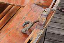 SANPRAM is a 12-foot long pedal boat, designed by Philip Thiel of "Escargot" fame. Although we couldn't see it since the boat was afloat, SANPRAM has a beautifully designed two-bladed wooden propellor, that, we are assured, can drive the little boat at 4 knots while pedaling at 75 rpm. Thiel's website, is a good place to check out making such a propellor in more detail.