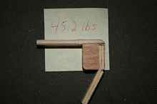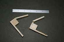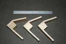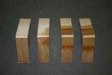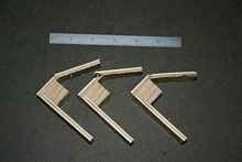 After allowing the joint to dry for 24 hours, I cut it into four 1-inch wide samples, discarding the ends. I cut two of the samples from the un-reinforced area; two from the “Tape & Glue” reinforced area. I cut the samples using a power miter saw with a length stop to ensure they would all be very close to the same width. The ‘legs’ of each sample were also cut to a uniform length, approximately 3-inches.