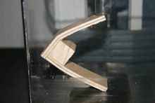 This preliminary testing taught me a few things. First, the corner on the chine log creates a spot in the plywood where stress is concentrated. Evidence of this is provided by the fact that all samples fractured at this point. On the reinforced samples the fiberglass reinforcement ended before or very close to the corner of the chine log on the “Handy Panel” leg. Extending the external fiberglass reinforcement farther along the plywood might prove to distribute the stress over a larger area. Also learned was that separation of the layers of the plywood might be thwarted by use of the “Tape & Glue” method.