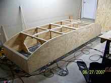 The side panels are all finished and the open beam floor stiffeners are in place.