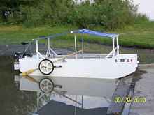 I also built the retractable landing gear using 2 X 2 X 1/8 square aluminum tubing and 20 inch #150 rated garden cart wheels.  The boat's framing was designed to have strong points for this attachment.  This makes it hand-launch able like a big wheel barrow.