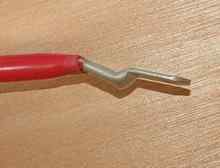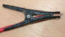 I attached the pipe to the cable with a squeeze fit by putting the cable and pipe into a large vice and crushing the pipe on the cable. This seemed better than brazing or soldering because the heat from a strike, which is considerable, could melt the solder or the braze. This would allow the pipe to slip off and sink.