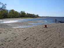 To the right of where I'm standing you can see some ankle-deep water. With the water level a little lower, this too would be beach.