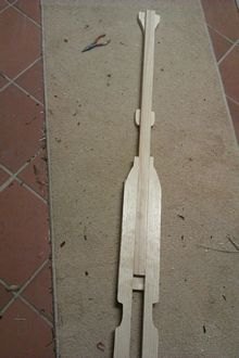 The back was formed using a piece of 19 by 45 (2 by 1) together with the offcuts from beside the hande/shaft of the paddle.