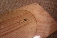 After gluing the parts of the back together the paddle was given a bit of external shape. I went fairly close to the final shape I was after in the blade but, as you may see later, it was mainly so I had a fair clue on how much to hollow out of the centre and then so I could know how much I could take off when doing the final shaping. I really should clean the sole of that plane a bit better.