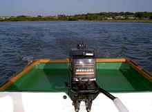 Flat-bottomed boats are known to be prone to nose "slamming", as they pitch down in rough weather. I have experienced this once, when I crossed a large wake from a big, high-speed boat. I found that I could reduce the effect by crossing the wake at a smaller angle. Recently, I used 7 litres (1.85 US gallons) of two-stroke fuel to motor 20 miles, mostly against a 2mph current.