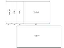 I also spent some time contemplating both the height of the sides of the EC PDR as well as the location of the built in floatation. The class rules for PDR racers restrict the bottom 10 inch of the hull to set dimensions. You can build a duck with 10 inch sides if you want to but be prepared to get wet which is not a pleasant or safe prospect for a going 300 miles on the water in March. However, higher sides translate into more weight and greater windage both of which have a detrimental impact on performance. Part of the reason I was so fast at the 2011 PDR worlds were the low 12 inch high sides on my duck along with its light weight. So, I was faced with a Goldilocks dilemma seeking that just right compromise between comfort and safety with high sides and performance with low. In the end, cut diagrams dictated 16 inch high sides being the best dimensions to get out of a standard sheet of plywood. As for floatation, I have been a fan of side airboxes for PDRs since my first duck. Eight inch airboxes allows the boat to float nicely on its side and come upright without any water in the cockpit. In fact, on my last duck it was quicker to tip the boat over to get the water out of the cockpit than to deal with a bucket and sponge. So, side airboxes with limited access. Floatation is sacrosanct and shouldn't be compromised for storage.
