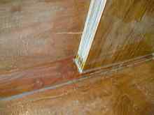 The big hitch came when I was nearly done. The glass adapted to all the curves until the bow, where I had cut out to allow lapping over about 2" from one side, and (I thought) the same back across on the other. But my cut for the other didn't account for shifting/stretching, and the glass came up short. More foul language didn't help, and I quickly cut a piece of cloth to cover the miss. As it turned out, after two additional coats of epoxy to bury the weave, and sanding, all this nastiness disappeared under the final urethane coats. But it felt bad at the time.
