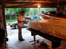 First time for everything, including squeegeeing epoxy onto fiberglass (that's me in the picture)