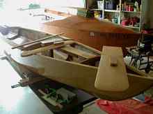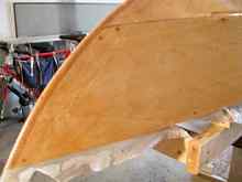 Pieces cut for daggerboard, rudder blade, and rudder cheek/housing