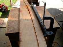 On May 29th, I started working on the mahogany pieces that would form horizontal surfaces along the sides of the cockpit area, and also the vertical pieces of the forward and aft of the cockpit. I bought two big 1" mahogany boards for this and also for the rudder, daggerboard, etc. I made a paper pattern to capture the curves of the sheer, comparing the two sides and hoping they were close, because I wanted to put one piece and then split it into two thin pieces by running it through the table saw on edge. It ended up working out ok. I cut the outer curve on the band saw.