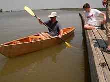 Steven watches me take the first stroke. no leaks, no structural failures, but boy is it tippy compared to my other boat!